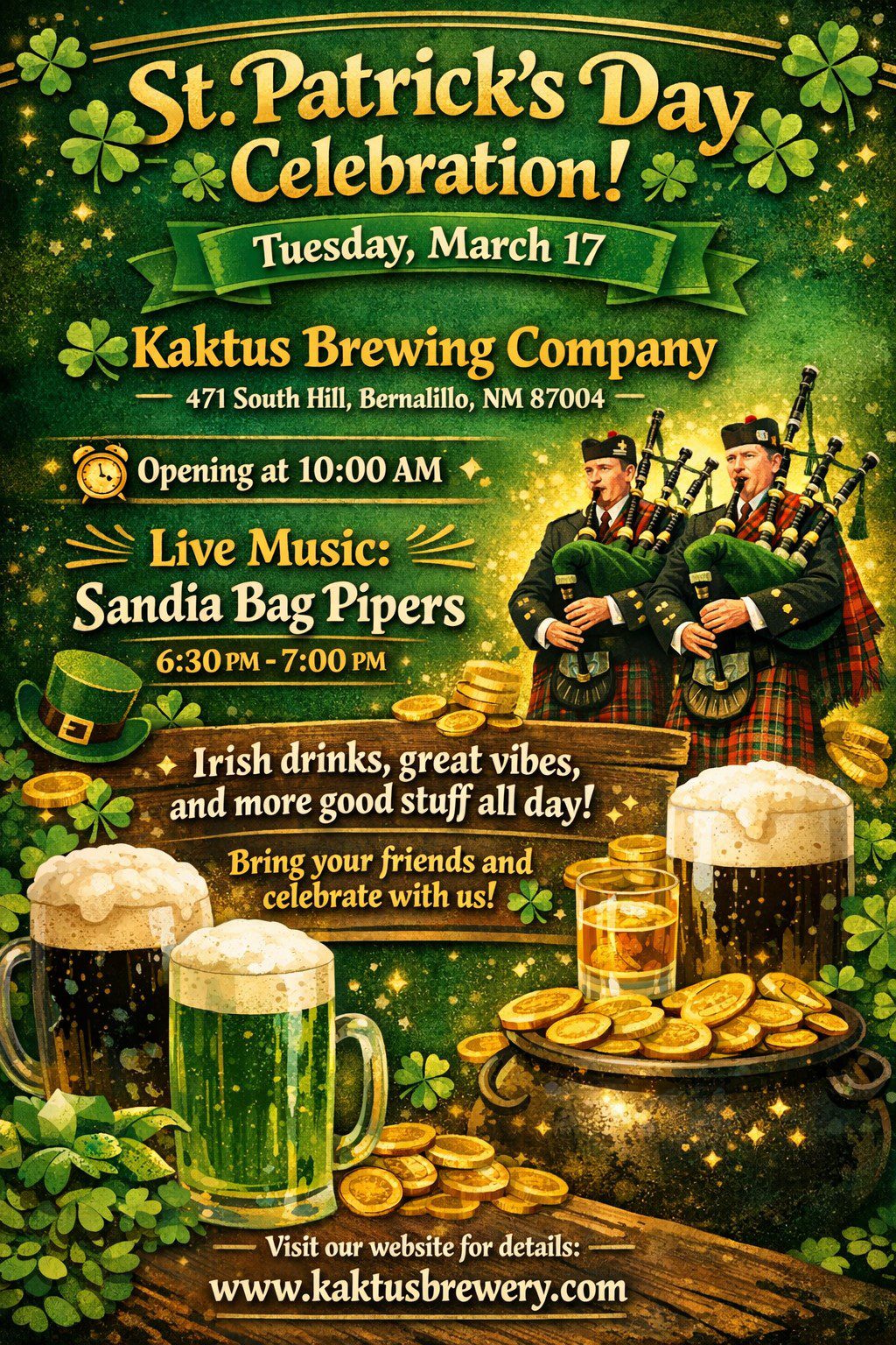 St. Patrick’s Day Event DateMar 17 2026Expired! Time 10:00 am More InfoVisit Their Website LocationKaktus Brewing Company471 South Hill, Bernalillo, NM 87004 Category Arts & Culture Spring EventsShare this event