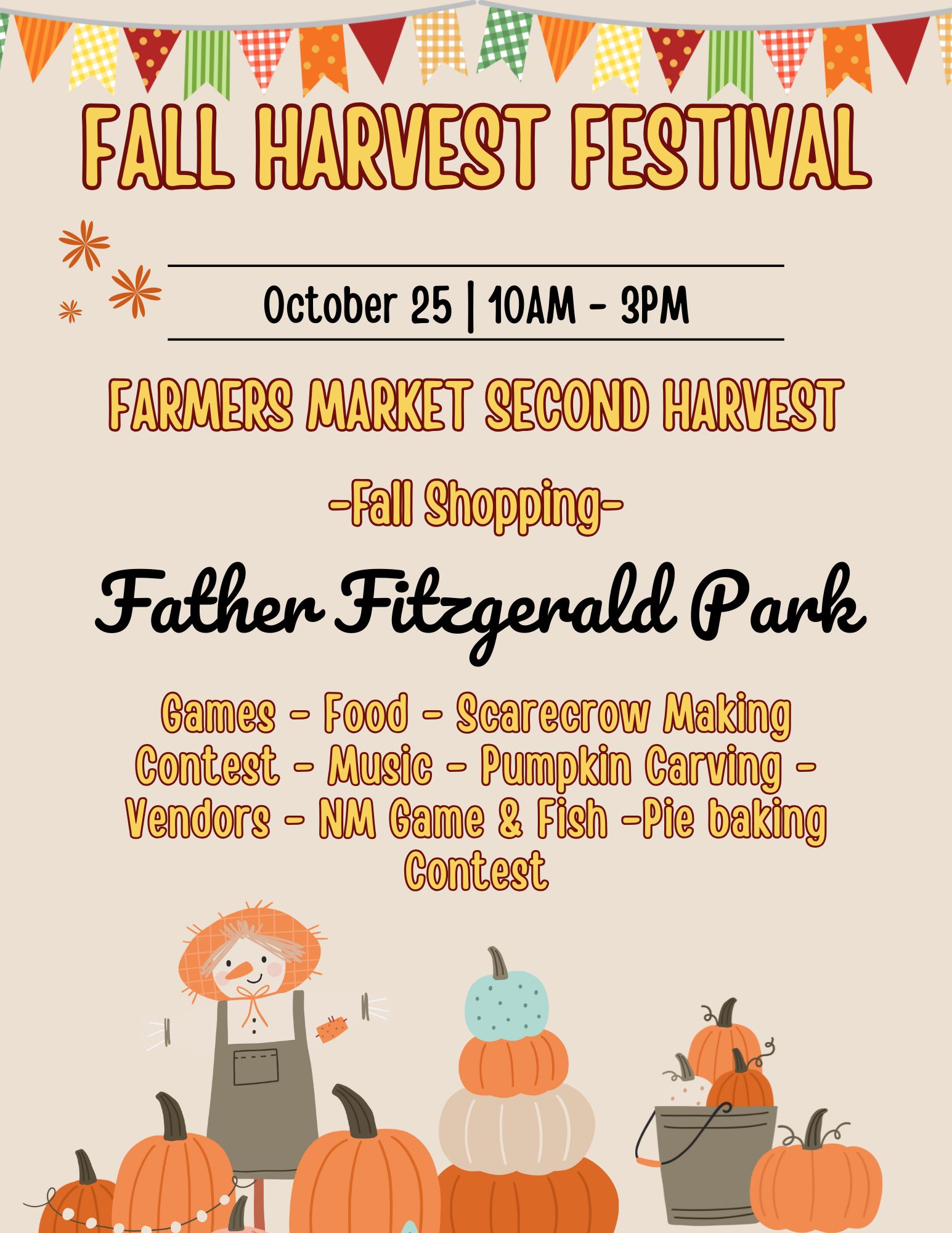 Village of Jemez Springs Fall Harvest Festival Date Oct 25 2025 Time 10:00 am - 3:00 pm Location Father Fitzgerald Park 1-97 Jemez Springs Plaza, Jemez Springs, NM 87025 Category Fairs & Festivals Fall Events Share this event